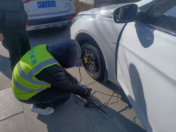 近日,市人民醫(yī)院停車場班組在日常維持場內(nèi)交通中發(fā)現(xiàn)一輛即將駛出停車場的白色轎車左前輪胎爆胎,嚴(yán)重影響行車安全,隨即引導(dǎo)車輛靠邊停車,詢問后得知這一對駕車來醫(yī)院探望病人的年輕夫妻竟對爆胎的事情全然不知,駕駛員小伙子是新手也不知道如何更換備胎。班長吳懷松同志當(dāng)機(jī)立斷,從黨員愛心服務(wù)站中拿出千斤頂和充氣泵,指揮人員以最快的速度更換了備胎、補(bǔ)足了胎壓,并叮囑他們到最近的維修點(diǎn)補(bǔ)胎或更換新輪胎,保證行車和人身安全。
