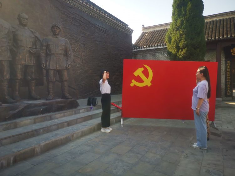 黨員們面對淮海戰(zhàn)役英勇犧牲的戰(zhàn)士照片前駐足默哀,向革命先烈們敬禮!在總前委銅塑雕像前新黨員們莊嚴宣誓,老黨員重溫入黨初心!在黨的領(lǐng)導(dǎo)人題詞的烈士紀念碑前久久凝視,不忍離去!