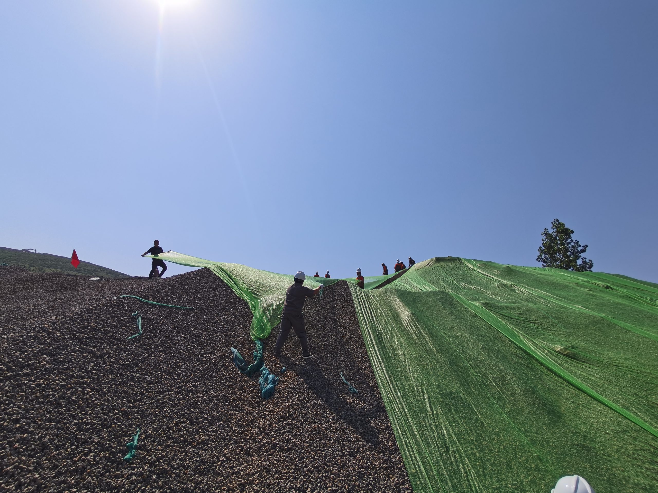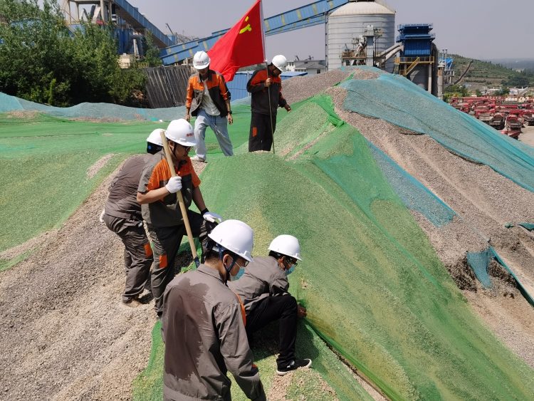 一個支部就是一座堡壘,一名黨員就是一面旗幟,行動是最有力的帶動,示范是最鮮明的垂范。為牢固樹立綠色礦山發(fā)展理念,堅決貫徹落實“綠水青山就是金山銀山”政策,2023年6月8日上午,通鳴黨支部組織黨員同志到汽修房處對裸露在外的石料進行防塵網(wǎng)的覆蓋,黨員同志們冒著酷暑,不畏炎熱,沖鋒在前,經(jīng)過一上午的努力,最終克服困難順利完成任務。通鳴黨支部著力發(fā)展基層黨組組織的戰(zhàn)斗堡壘作用和黨員的先鋒模范作用,通鳴黨支部始終堅守初心、擔當使命,敬業(yè)愛崗,用自己的實際行動讓黨旗飄揚在最高處。