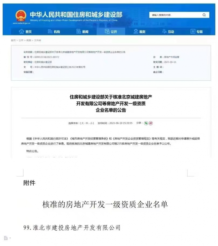 淮北市建投房地產(chǎn)開發(fā)有限公司喜獲房地產(chǎn)開發(fā)一級資質(zhì)