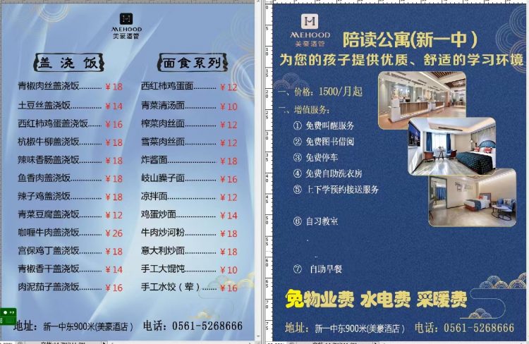 利用美豪酒店地理、環(huán)境優(yōu)勢,結(jié)合新一中學(xué)生需求,為學(xué)生用心打造“三免、七大”增值服務(wù)陪讀房方案,既免費(fèi)提供水電、采暖、物業(yè)、停車服務(wù),還結(jié)合學(xué)生需求,免費(fèi)提供打印、叫醒、圖書借閱、自助洗衣等優(yōu)質(zhì)增值服務(wù);同時為緩解家長送學(xué)壓力,酒店提供上下學(xué)接送服務(wù)、自習(xí)教室服務(wù)、自助早餐服務(wù)等。美豪酒店配備24小時安保巡邏、全天值守客房管家,為學(xué)生提供安全、優(yōu)質(zhì)、舒適的學(xué)習(xí)及住宿環(huán)境。
