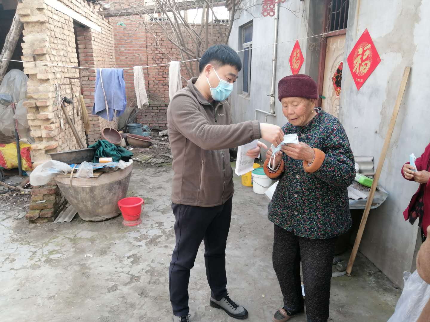 為進(jìn)一步做好脫貧攻堅(jiān)“單位包村 干部包戶”工作,響應(yīng)集團(tuán)公司號(hào)召,2020年3月12日下午,東盛公司幫扶小組一行3人前往火神廟,為幫扶對(duì)象黃張氏老人送去口罩、酒精和消毒液等抗疫防護(hù)物資。