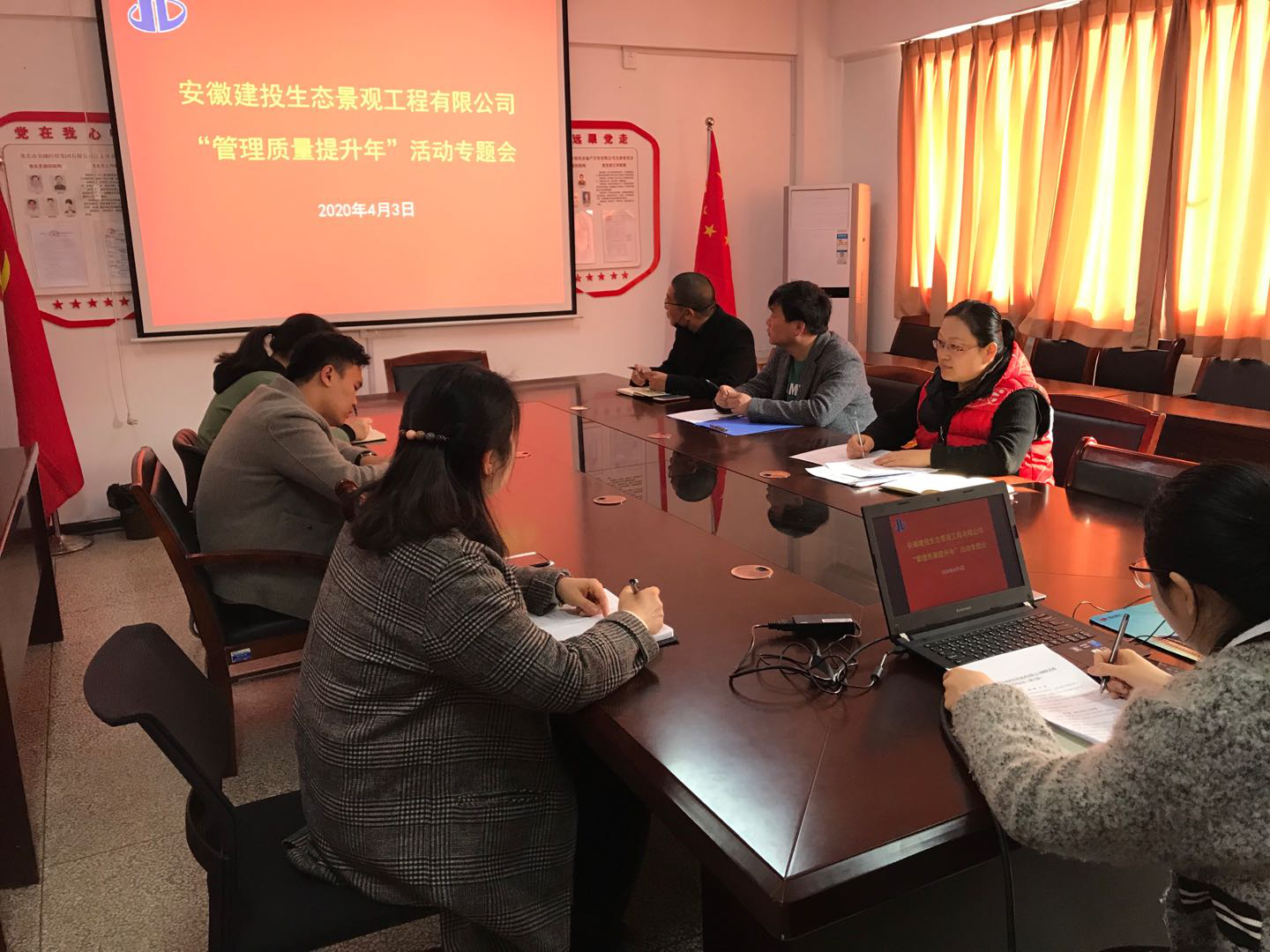 2020年4月3日上午,生態(tài)景觀公司在四樓會(huì)議室召開“管理質(zhì)量提升年”活動(dòng)專題會(huì)。副總經(jīng)理徐美芳傳達(dá)了集團(tuán)公司《關(guān)于全面開展“管理質(zhì)量提升年”活動(dòng)實(shí)施方案》的通知和《“管理質(zhì)量提升年”考核辦法》。