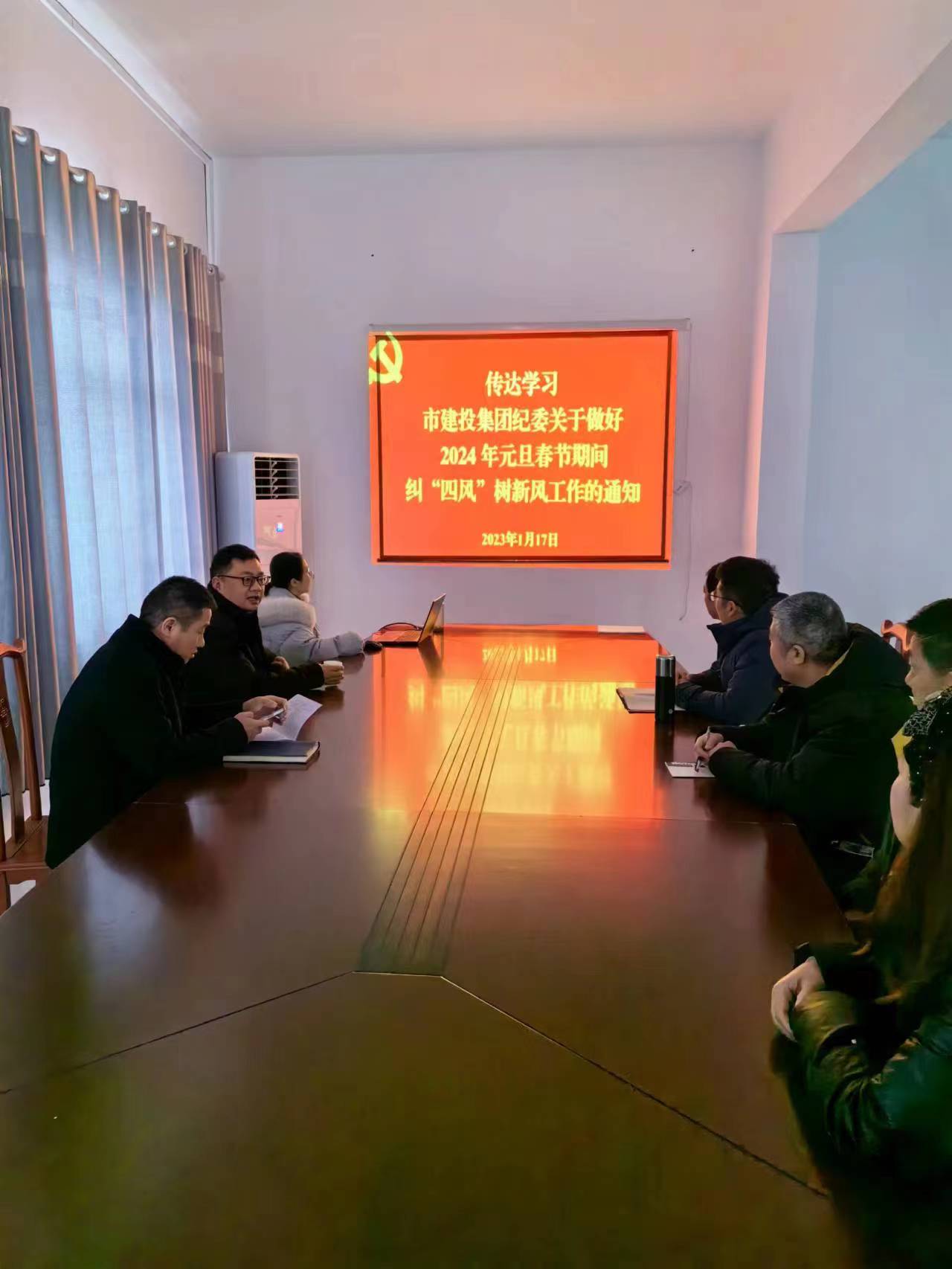 2024年春節(jié)將至,為貫徹落實(shí)《市建投集團(tuán)紀(jì)委關(guān)于做好2024年元旦春節(jié)期間糾“四風(fēng)”樹(shù)新風(fēng)工作的通知》文件精神,啟航市政公司黨支部全體黨員以集體學(xué)習(xí)的形式傳達(dá)學(xué)習(xí)了《市建投集團(tuán)紀(jì)委關(guān)于做好2024 年元旦春節(jié)期間糾“四風(fēng)”樹(shù)新風(fēng)工作的通知》。