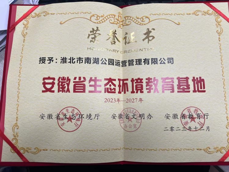 南湖公園榮獲首批“安徽省生態(tài)環(huán)境教育基地”稱(chēng)號(hào)