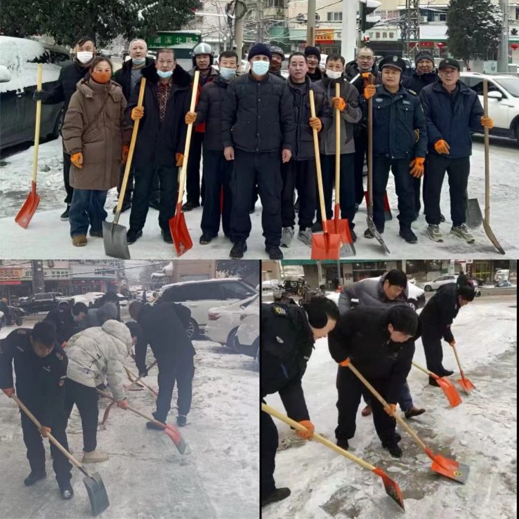 雪冷人心暖,雪厚情更濃。雖然寒風凜冽、寒氣逼人,但到處都是同志們忙碌的身影,大家揮舞著鐵鍬,推、鏟、揚各種方法齊上陣,分工明確、配合默契,干勁十足,用汗水融化冰雪、以齊心共御風寒,為市民開辟出一道“平安路、暖心路”,確保市民方便出行、安全出行、溫暖出行。
