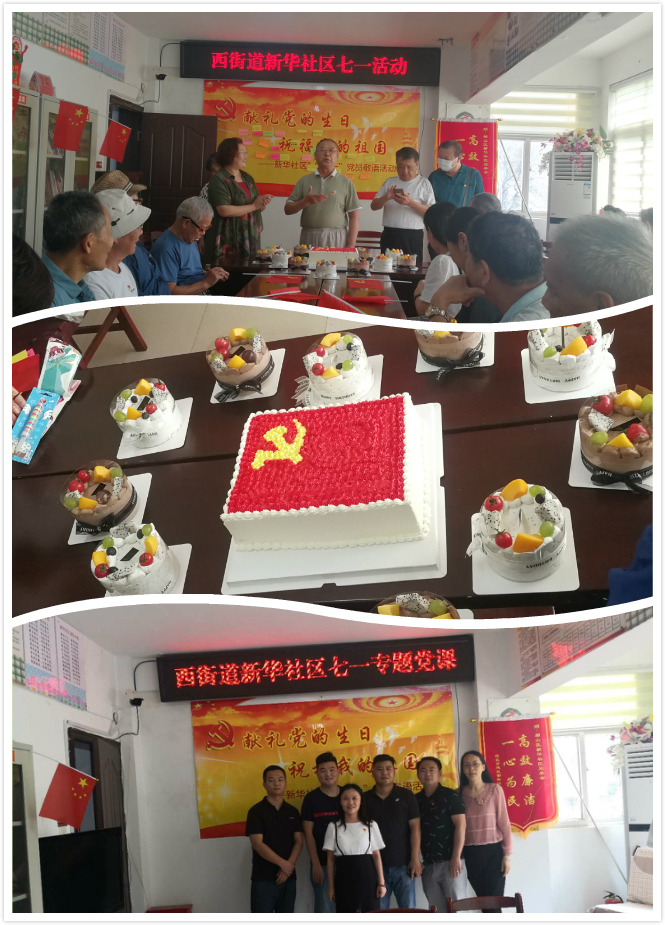 商貿(mào)公司黨支部黨員與新華社區(qū)共建開展以“獻禮黨的生日,祝福我的祖國”為主題的慶七一主題活動,黨員親筆書寫對黨和祖國的祝福,社區(qū)老黨員帶領(lǐng)全體黨員齊聲高唱《永遠跟黨走》,在熱烈的歌聲中大家切蛋糕,共同慶賀黨的99歲生日,大家邊吃著蛋糕,邊說著今天的幸福生活。