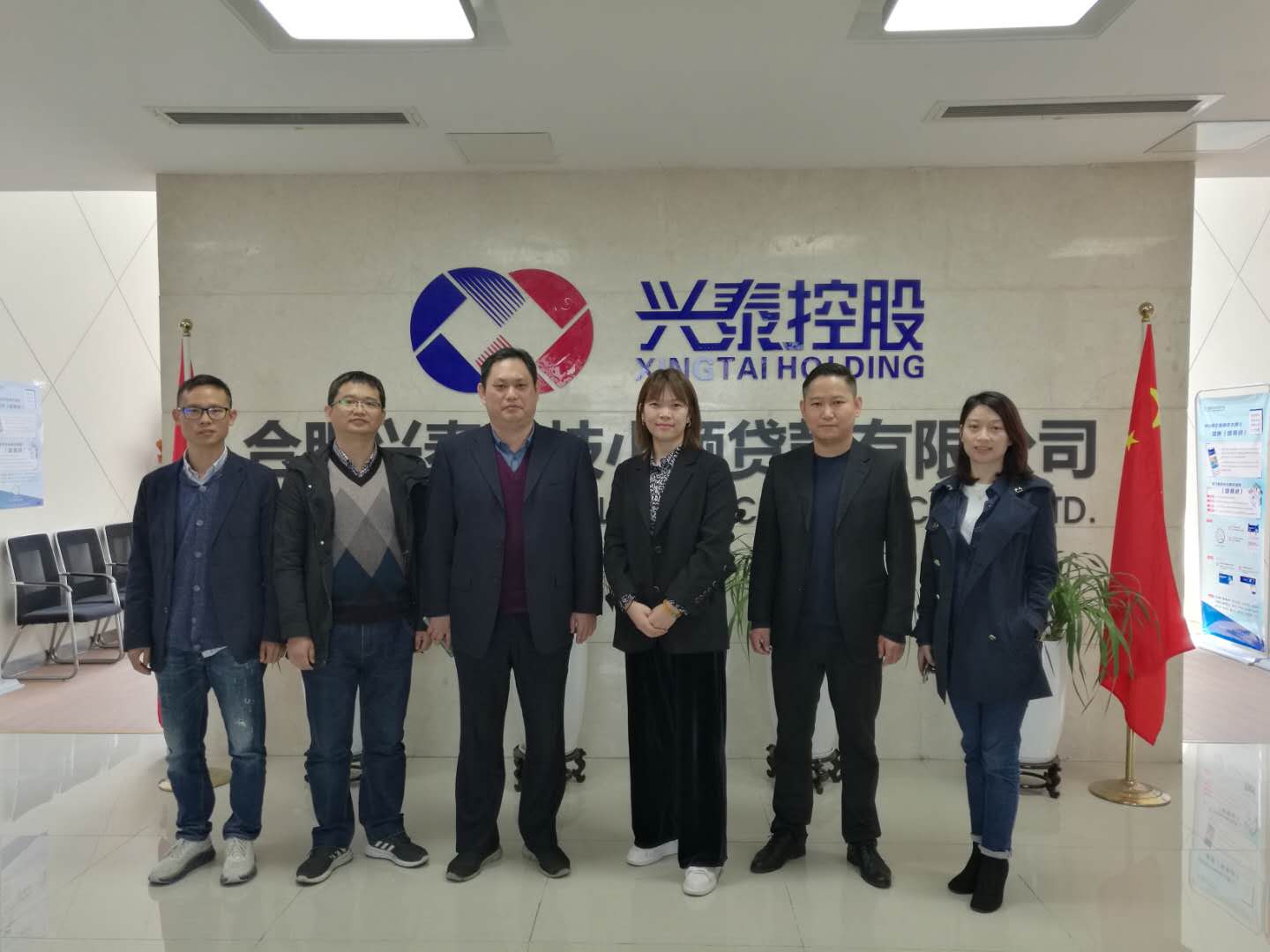 為了響應淮北建投集團黨委關于下屬子公司向行業(yè)內優(yōu)秀公司對標學習的號召,2020年10月23日,淮北市建投小額貸款有限公司負責人趙瑩瑩、業(yè)務部負責人張恒在安徽省小貸協(xié)會副秘書長吳紹成引薦陪同下,前往合肥興泰金融控股(集團)下屬子公司合肥興泰科技小額貸款有限公司交流學習。