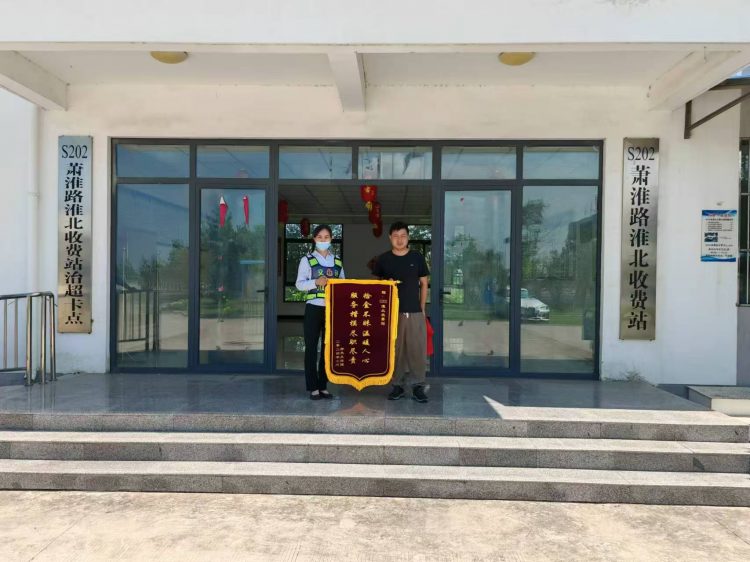 真的謝謝你們,沒接到你們電話之前,我已經(jīng)和家里的人找了好久了,一直不知道掉哪里了。感謝你們拾金不昧、樂于助人,送上小小錦旗,聊表謝意!”7月25日,在S202淮北收費(fèi)站,失主孫先生送上錦旗一個(gè)勁地向工作人員道謝。