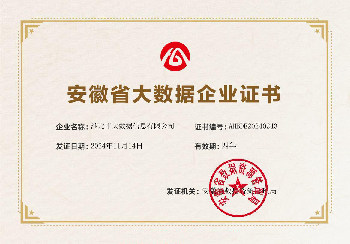 淮北市大數(shù)據(jù)公司通過(guò)省級(jí)大數(shù)據(jù)企業(yè)認(rèn)證