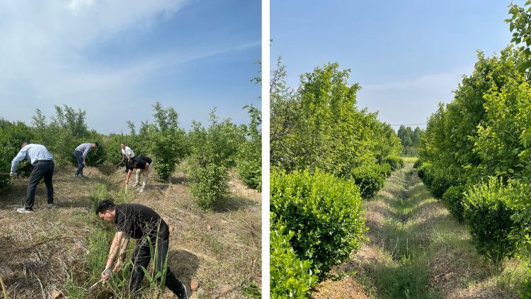 活動現(xiàn)場,黨支部書記李振昊帶領(lǐng)全體黨員對綠金湖苗圃基地苗木開展日常養(yǎng)護(hù)工作。全體黨員干部分工協(xié)作、默契配合,有序完成除草除雜、修剪、澆灌等工作,使苗圃環(huán)境煥發(fā)新貌,以實際行動詮釋黨員“勇于吃苦、樂于奉獻(xiàn)”的精神品質(zhì)。