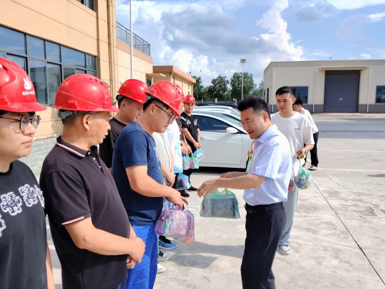 在慰問中朱濤詳細(xì)了解公司工作情況,著重強(qiáng)調(diào)安全生產(chǎn)工作,叮囑大家高溫天氣要做好防暑降溫措施,時刻把安全生產(chǎn)牢記于心。一份清涼、一份關(guān)愛,集團(tuán)公司對一線職工的關(guān)懷、關(guān)愛送到每位職工的心坎上,極大地鼓舞了職工的士氣和工作熱情。大家紛紛表示今后要以更加飽滿的熱情投入到工作中去,堅(jiān)守崗位、克服高溫,全力以赴做好生產(chǎn)工作。