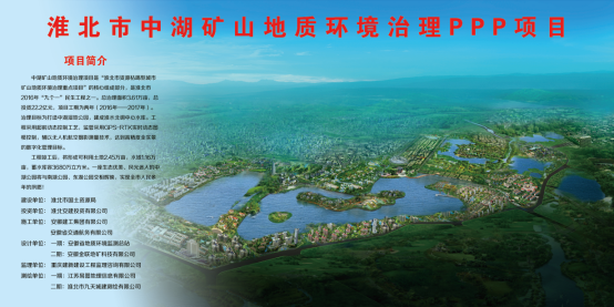 中湖治理采用PPP融資模式,由安徽建工集團(tuán)與淮北市建投控股集團(tuán)有限公司合作建設(shè)。采用工程治理和生態(tài)修復(fù)等措施,對(duì)采煤沉陷區(qū)實(shí)施適度超前式治理,被國(guó)家財(cái)政部、國(guó)土資源部等部委列為國(guó)家第三批PPP示范工程,在全國(guó)礦山地質(zhì)環(huán)境治理工作中具有引導(dǎo)示范效應(yīng)。