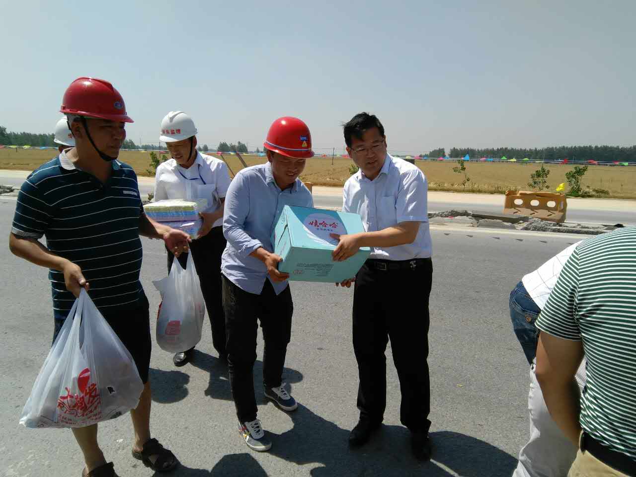 驕陽似火,酷暑難耐。為感謝激勵奮斗在烈日中的一線員工,2017年5月27日,集團黨委委員、副總經理、交投公司總經理張立哲帶領交投公司黨支部一行先后走訪S202收費站項目部和高樓山石料廠項目部門,看望慰問堅守在高溫烈日下的一線員工。