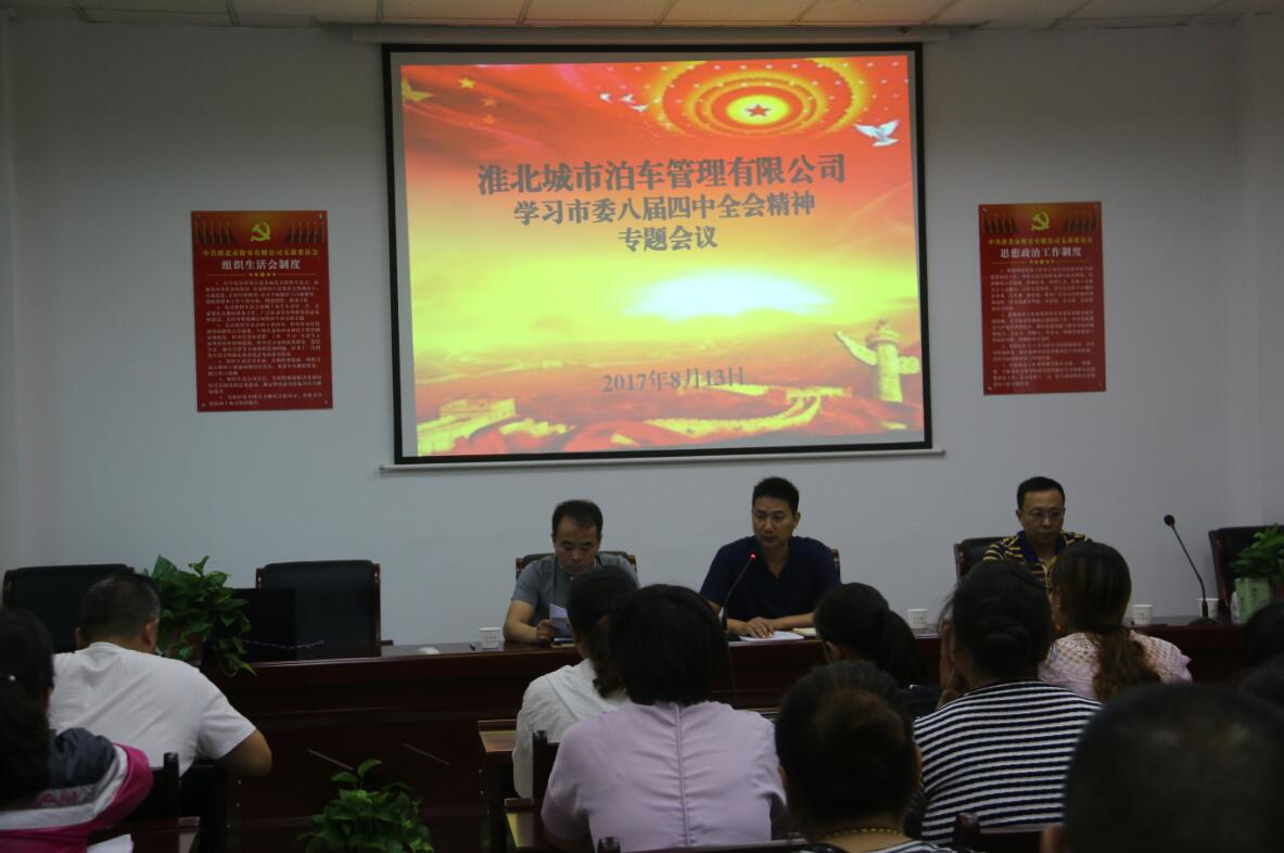 8月13日下午18時,淮北城市泊車管理有限公司召開全體人員專題會議,傳達(dá)學(xué)習(xí)市委八屆四次全會精神,研究部署貫徹落實全會精神的有關(guān)舉措。