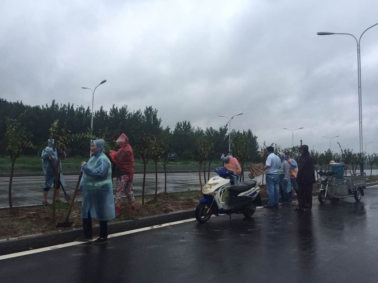 9月10日,公司工程部員工冒著瓢潑大雨在市政府重點(diǎn)工程—梧桐路工程的施工工地上進(jìn)行綠化施工。據(jù)工程部部長張勇介紹,為了響應(yīng)市政府創(chuàng)建工作,抓住雨天種植綠化樹木的成活率高,調(diào)動公司各部門加班加點(diǎn),克服雨中施工的困難,為創(chuàng)建工作做出最大努力。