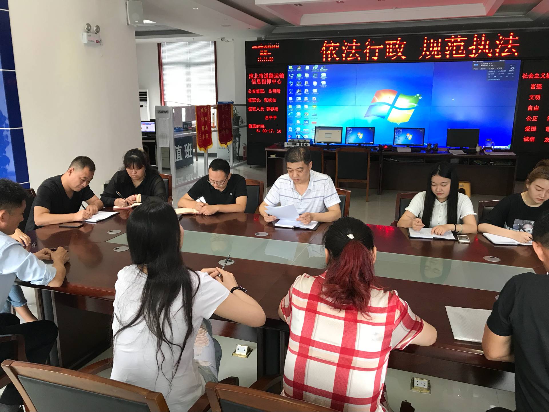 5月29日上午,融通公司總經理張曉兵同志在市道路運輸信息指揮中心一樓大廳組織公司全體員工學習《關于五起“不作為、不擔當、亂作為”典型問題的通報》。
