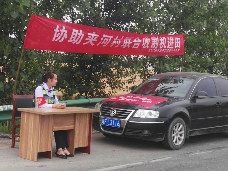 S202收費站設(shè)立協(xié)助聯(lián)合收割機(jī)進(jìn)田服務(wù)點,有效挽回公司損失