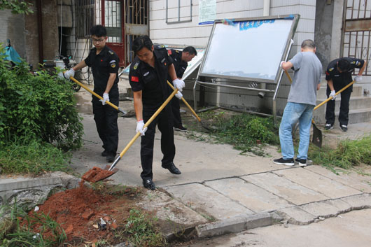 7月27日周五是保安公司黨員固定活動日。當(dāng)天下午15時,在公司黨支部生活委員的帶領(lǐng)下十幾名黨員對公司附近綠化帶的雜草進(jìn)行了集中清理。