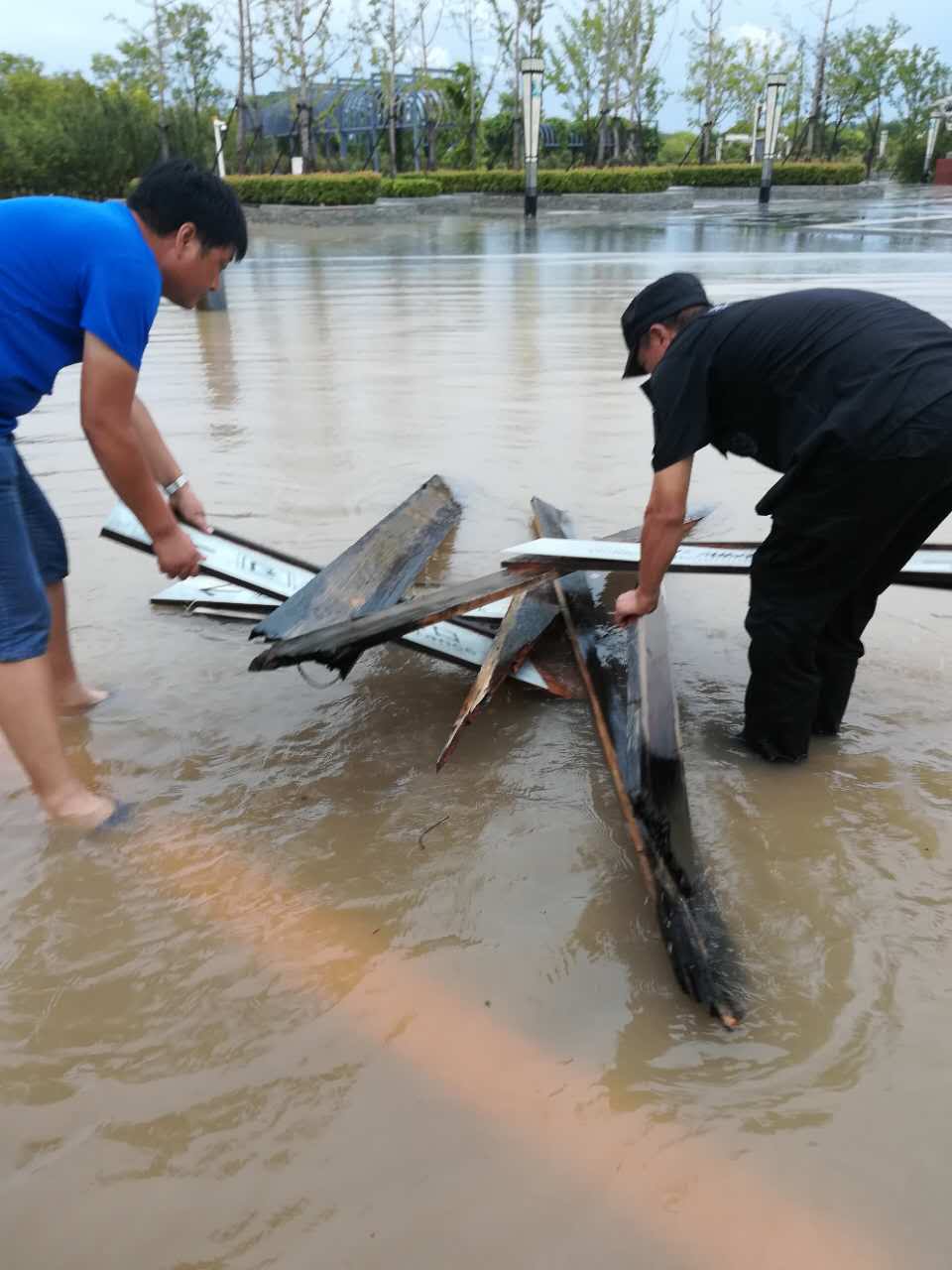 受連日暴雨影響,南湖景區(qū)多處出現(xiàn)積水現(xiàn)象,抗訊領(lǐng)導(dǎo)小組第一時(shí)間趕赴現(xiàn)場(chǎng),進(jìn)行應(yīng)急處置。工作人員冒雨挖掘排水渠,設(shè)置安全警戒線,及時(shí)清掃路面淤泥和倒伏的樹(shù)木。另外,旅游碼頭由于湖區(qū)水位上漲,浮橋防抱柱達(dá)到最高升降點(diǎn),工作人員現(xiàn)場(chǎng)進(jìn)行加高加固及時(shí)調(diào)整躉船泊位,消除安全隱患。