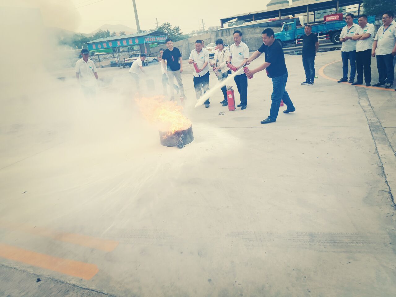 為了普及消防安全常識(shí),提升員工應(yīng)急防護(hù)自救,強(qiáng)化消防意識(shí),做好駕校訓(xùn)練場(chǎng)所的消防安全工作,金安聯(lián)合金鷹、金盾于2019年5月15日下午16:00—16:30舉行了“消防演練活動(dòng)”。整個(gè)活動(dòng)包括兩大項(xiàng):一、由專業(yè)消防人員介紹認(rèn)識(shí)滅火器和正確使用滅火器;二、演練火災(zāi)滅火過程,共歷時(shí)半小時(shí),駕校全體員工及部分學(xué)員共計(jì)人參加了演練。通過此次消防演練,為大家提供了一次實(shí)戰(zhàn)模擬訓(xùn)練,使大家熟悉了必須的應(yīng)急操作,進(jìn)一步增強(qiáng)了員工消防意識(shí)能力,同時(shí)還掌握了干粉滅火器操作使用步驟及方法。