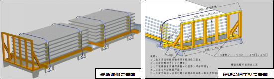 1. 運(yùn)輸過(guò)程中,因滿載構(gòu)件貨車(chē)的慣性巨大,故構(gòu)件捆綁、貨車(chē)行駛速度、安全限位擋塊等安全措施,要求如下: